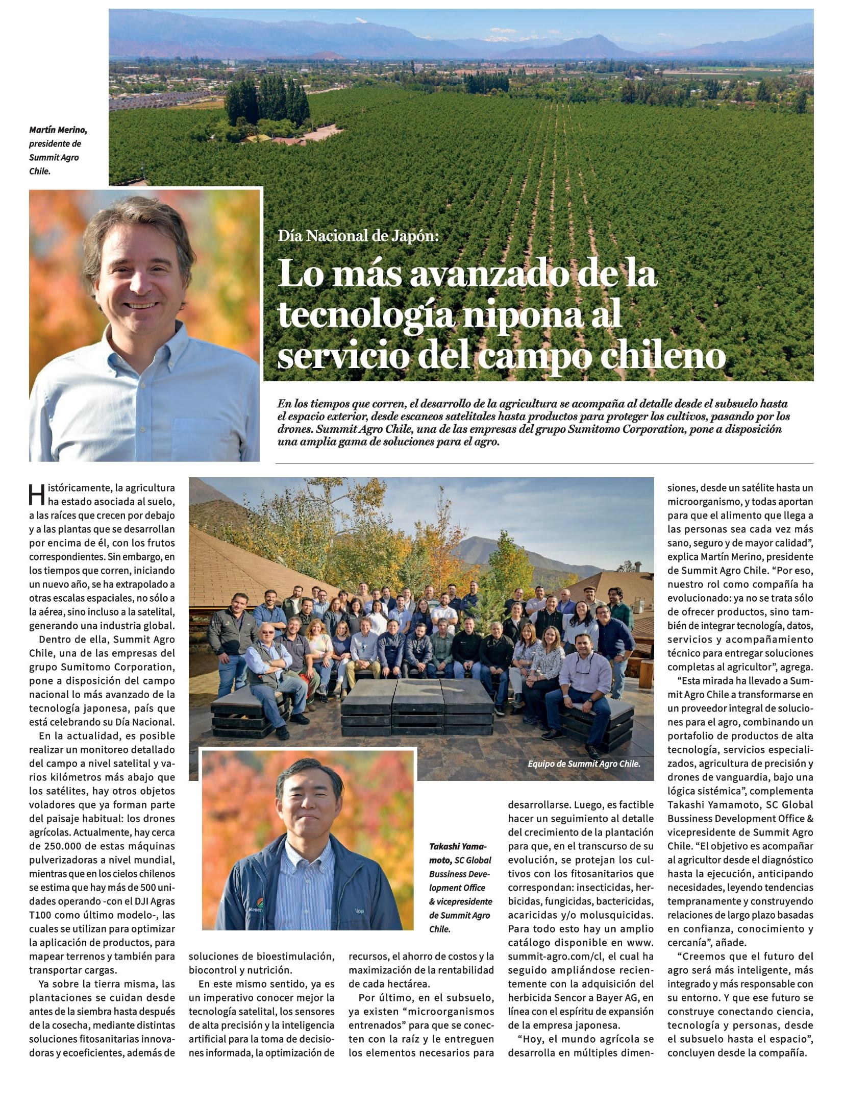 Dentro de ella, Summit Agro Chile, una de las empresas del grupo Sumitomo Corporation, pone a disposición del campo nacional lo más avanzado de la tecnología japonesa, país que está celebrando su Día Nacional.