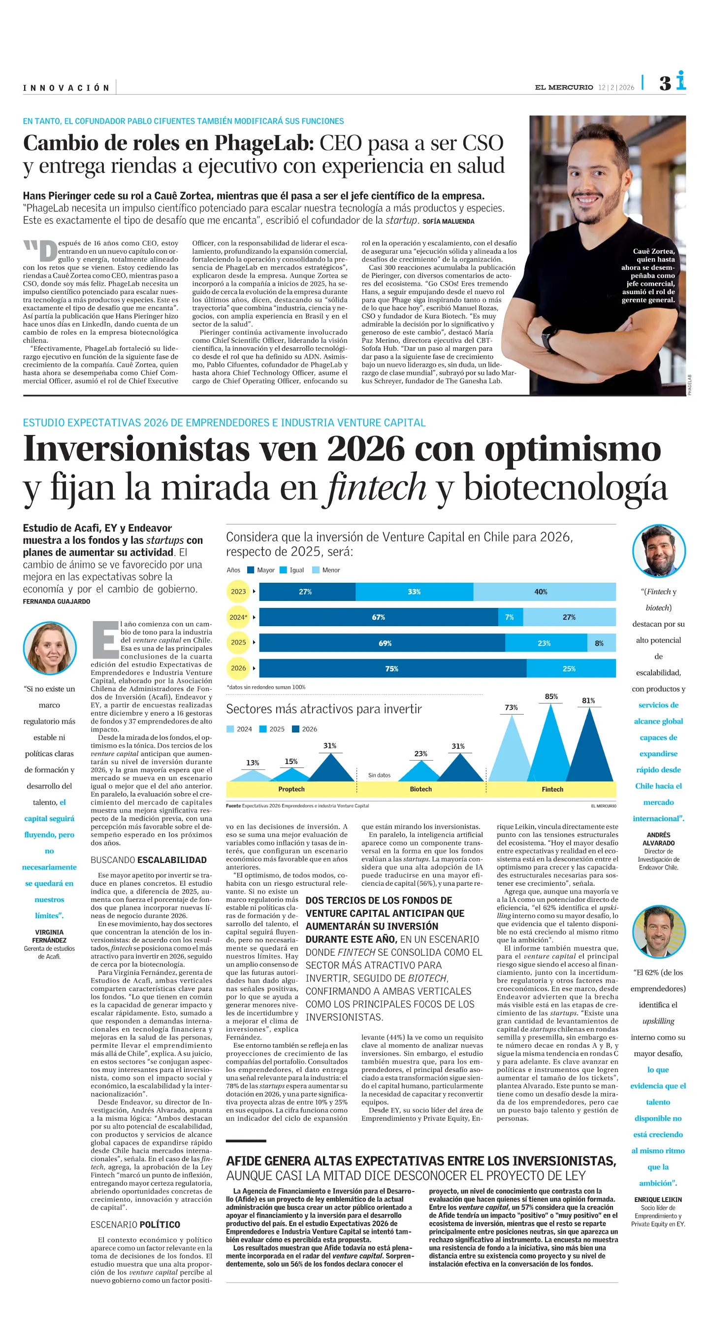 El Mercurio InnovaciónInversionistas ven 2026 con optimismo y fijan la mirada en fintech y biotecnología