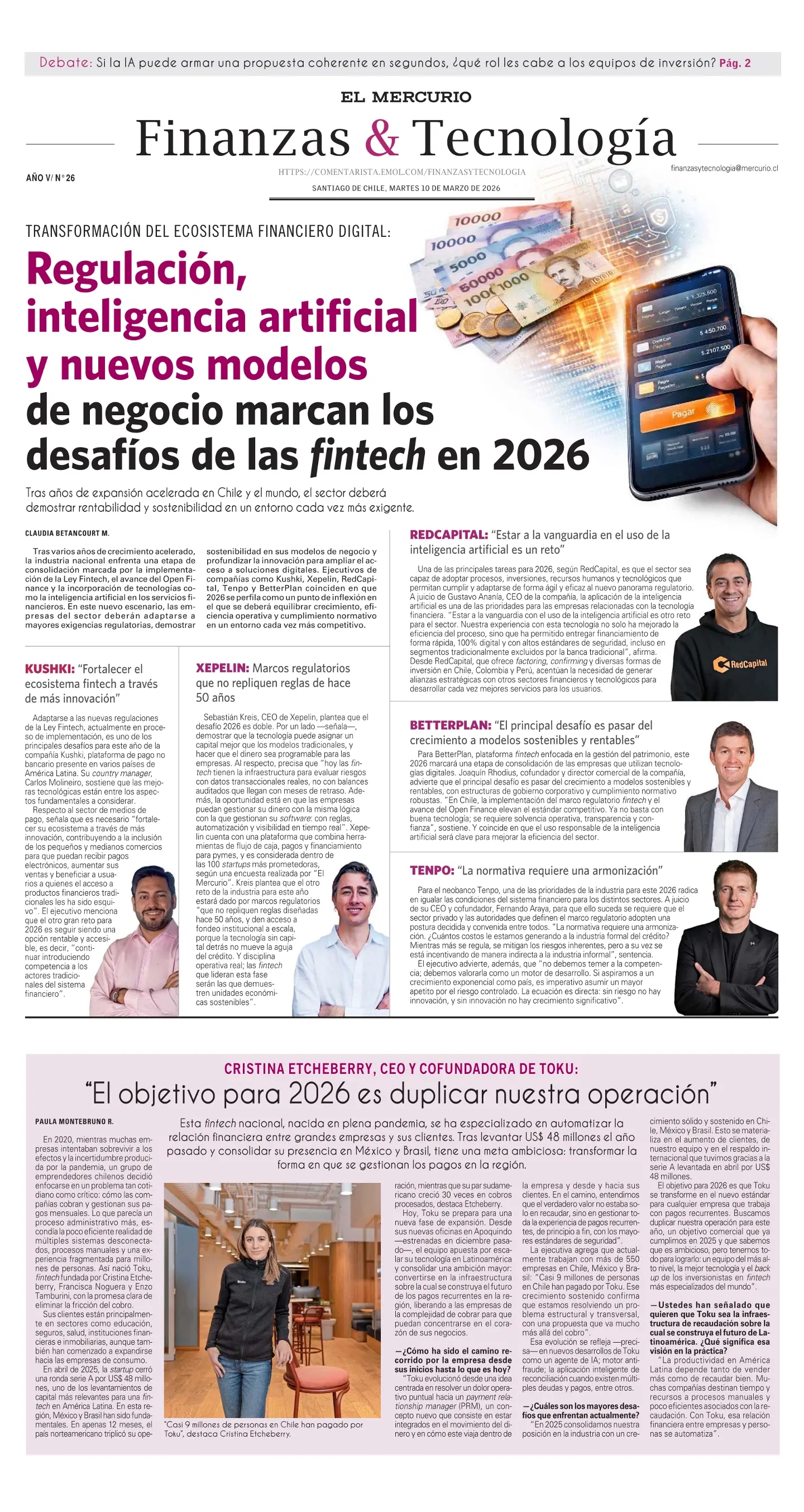 El Mercurio (Edición Especial)Regulación, inteligencia artificial y nuevos modelos de negocio marcan los desafíos de las fintech en 2026