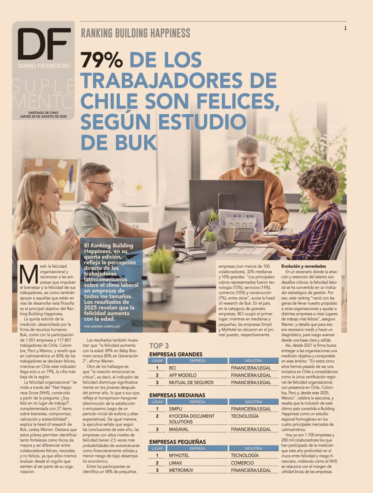 DF Suplemento79% DE LOS TRABAJADORES DE CHILE SON FELICES, SEGÚN ESTUDIO DE BUK