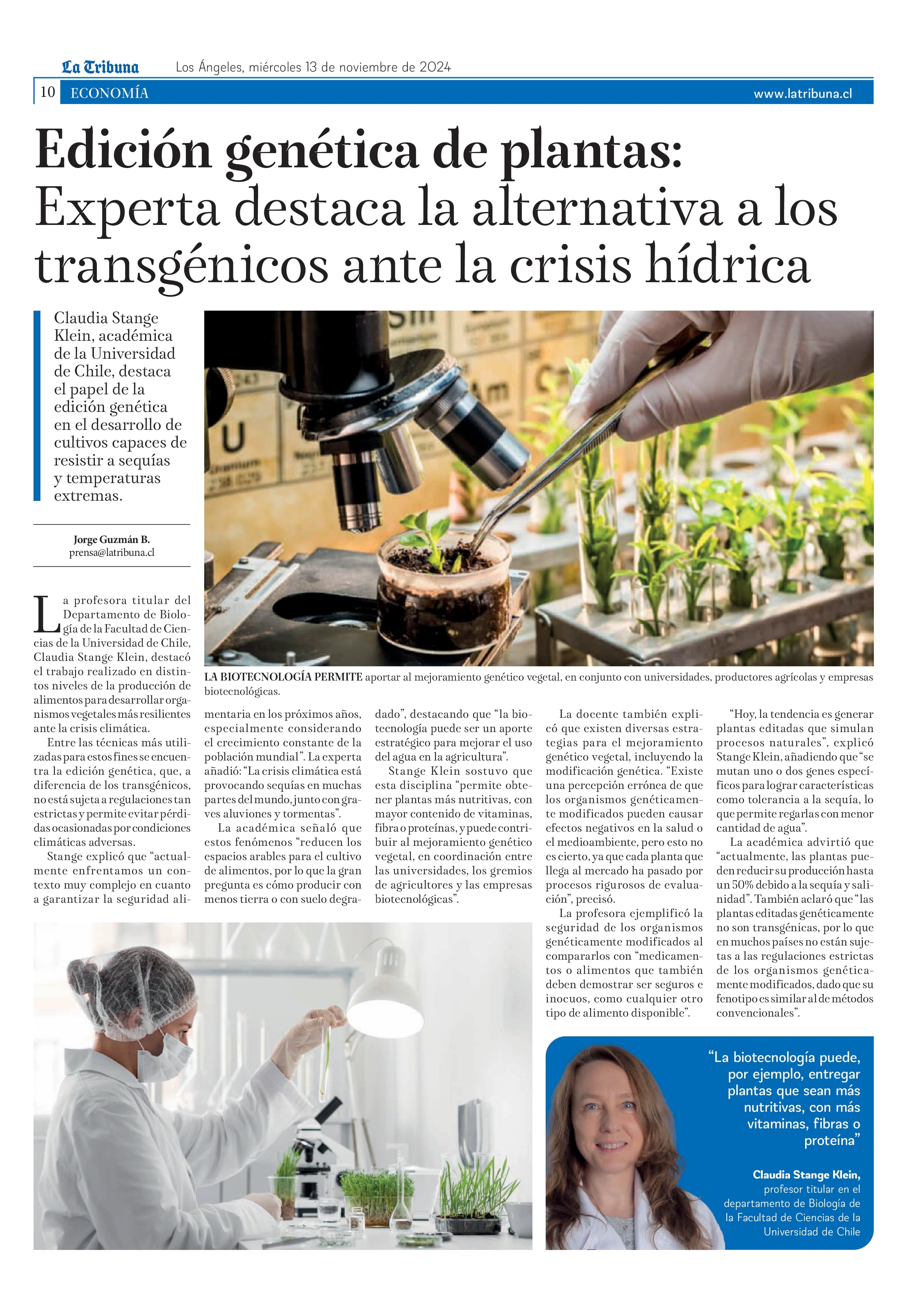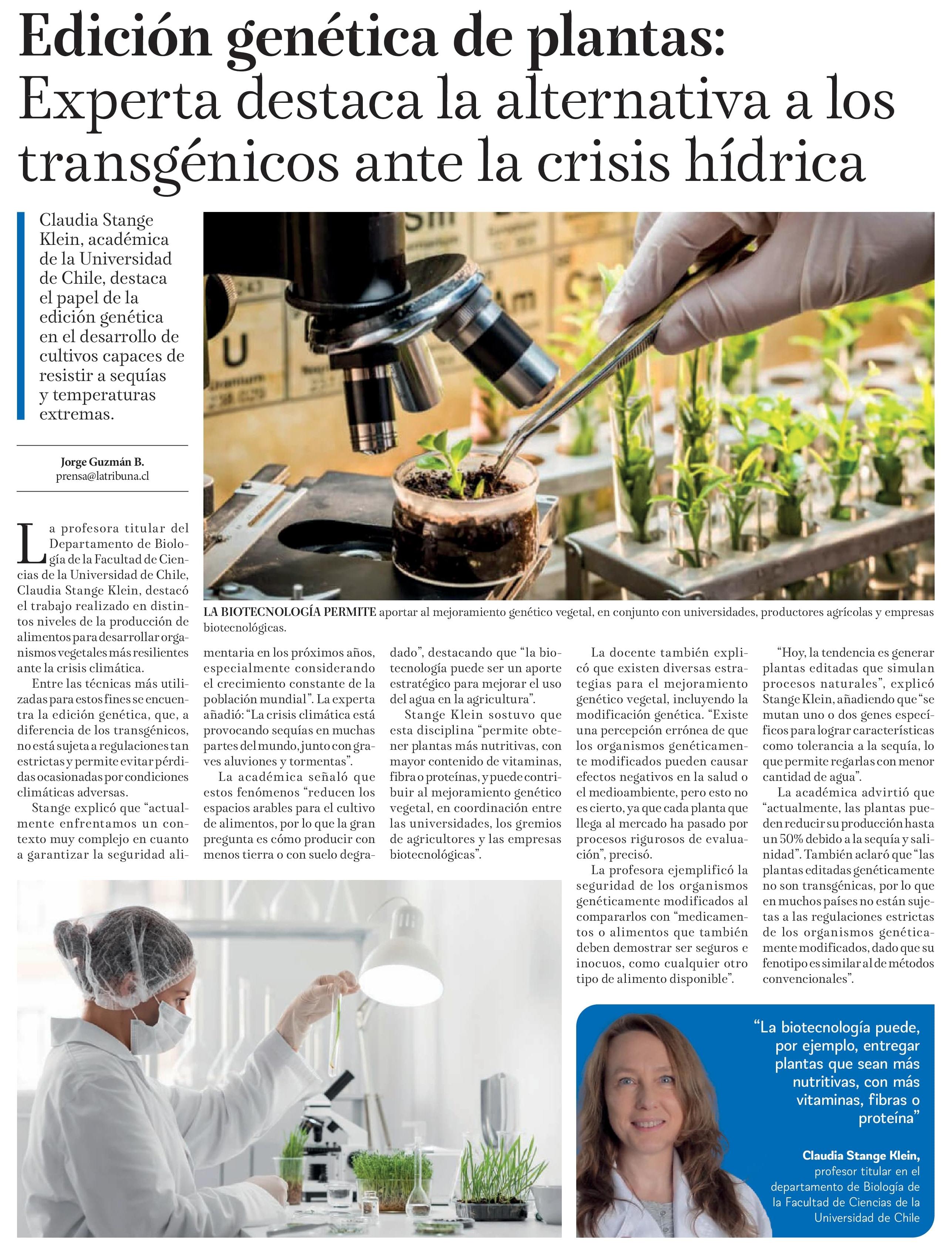 La TribunaEdición genética de plantas: Experta destaca la alternativa a los transgénicos ante la crisis hídrica
