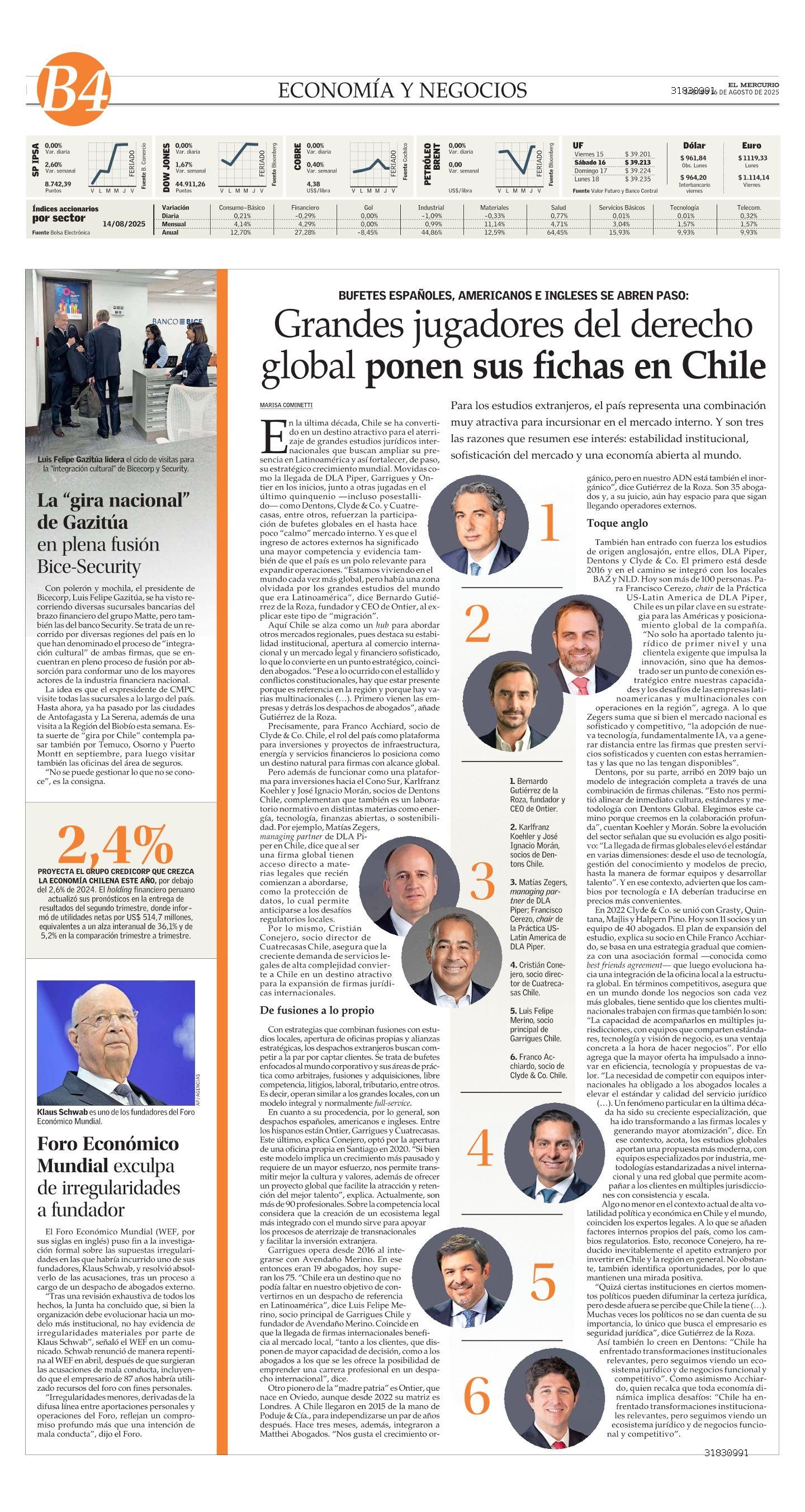El Mercurio Cuerpo BGrandes jugadores del derecho global ponen sus fichas en Chile