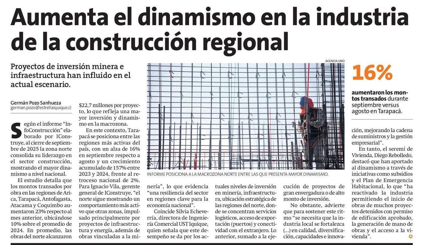 La Estrella de IquiqueAumenta el dinamismo en la industria de la construcción regional