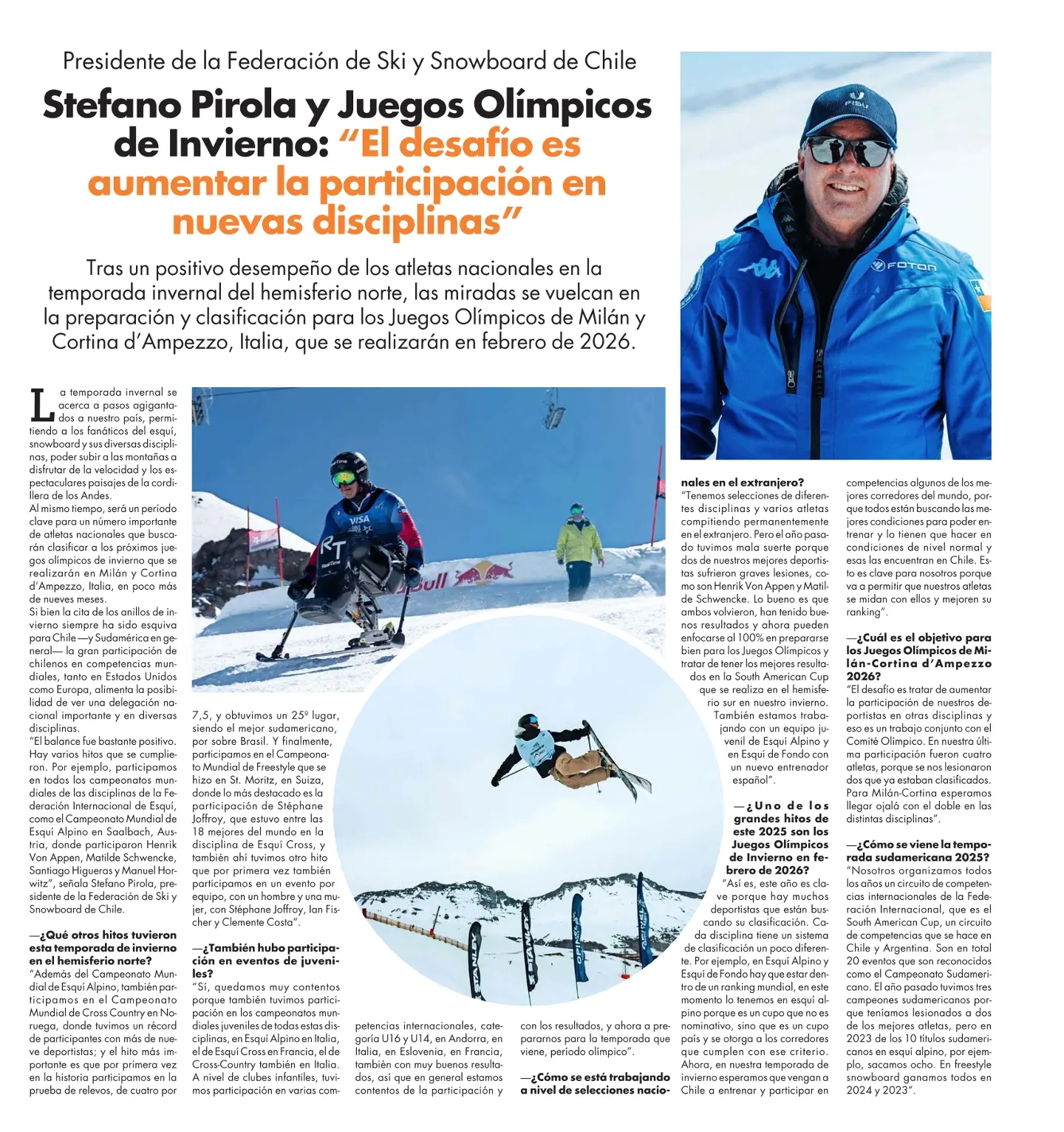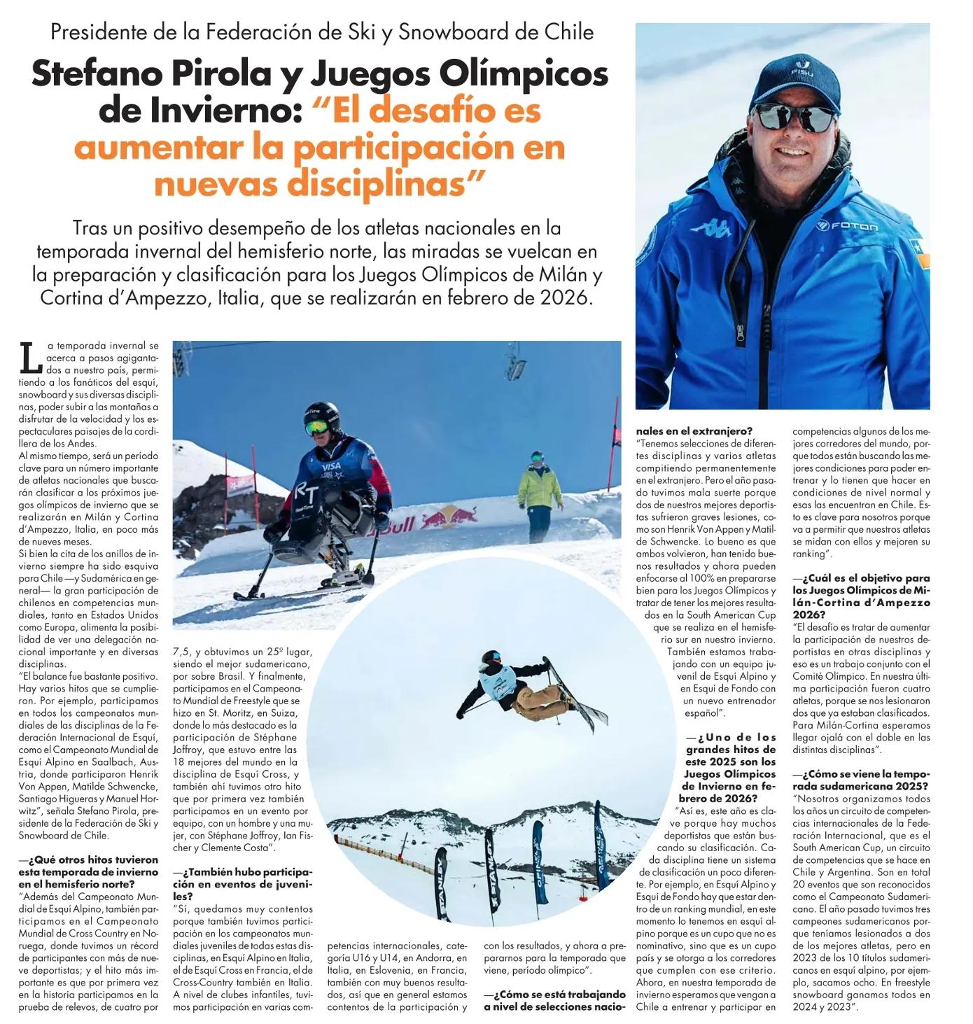 El Mercurio Cuerpo CStefano Pirola y Juegos Olímpicos de Invierno: “El desafío es aumentar la participación en nuevas disciplinas”