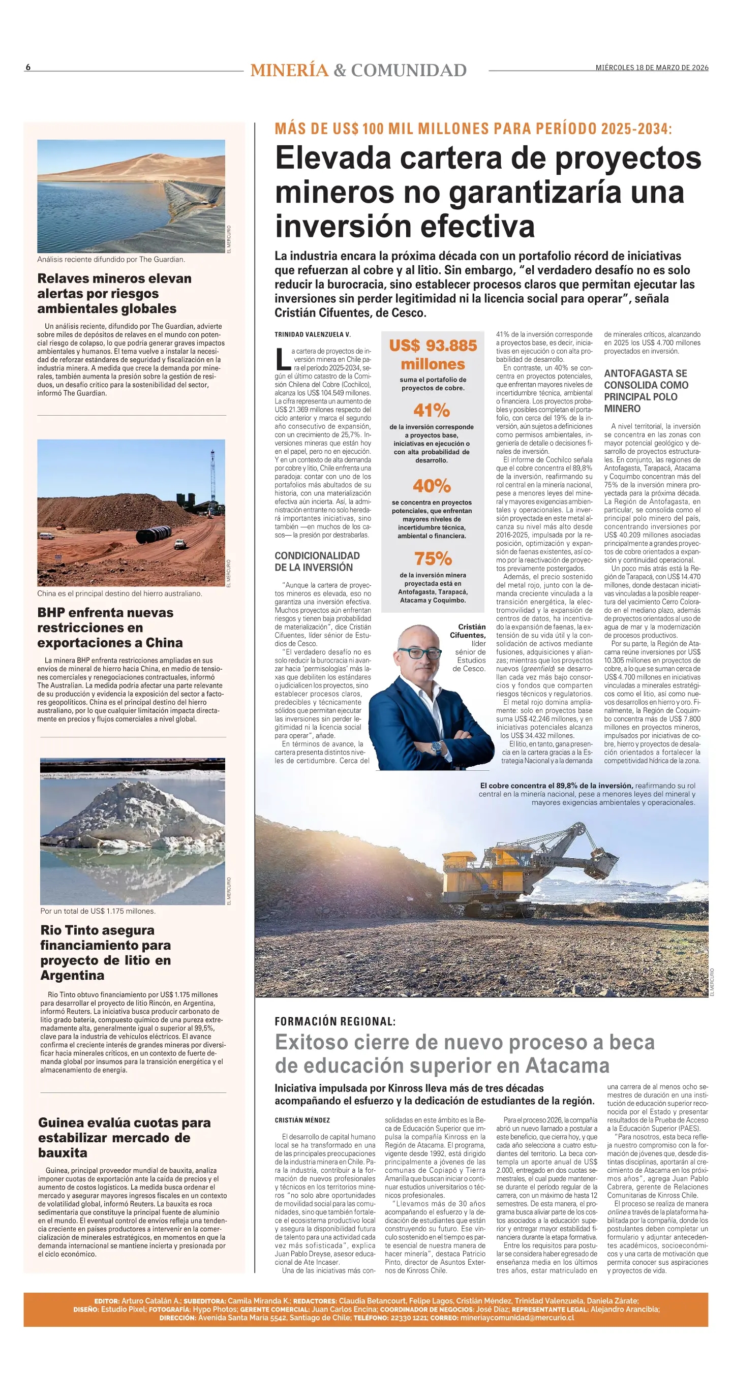El Mercurio (Edición Especial)Elevada cartera de proyectos mineros no garantizaría una inversión efectiva