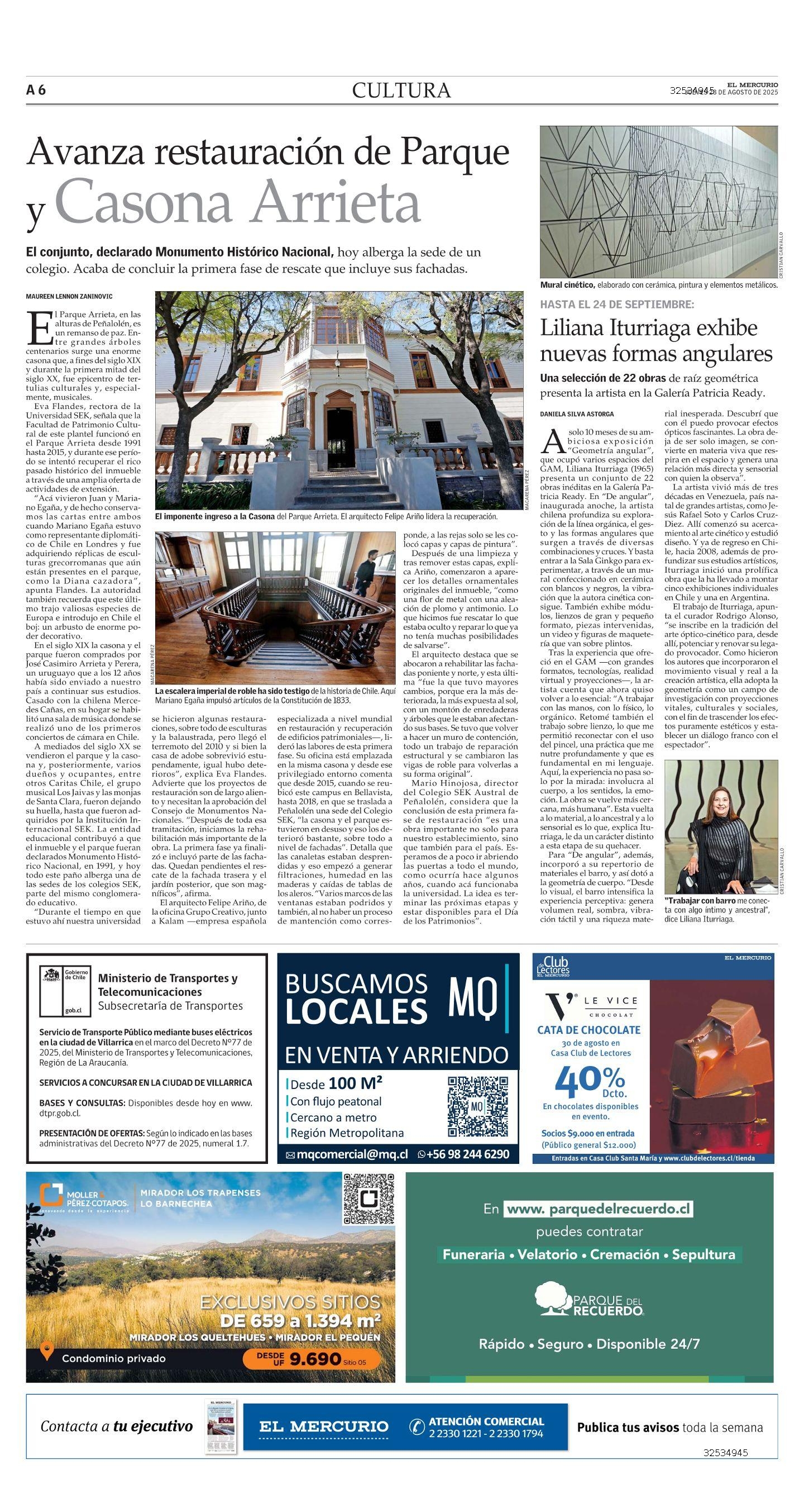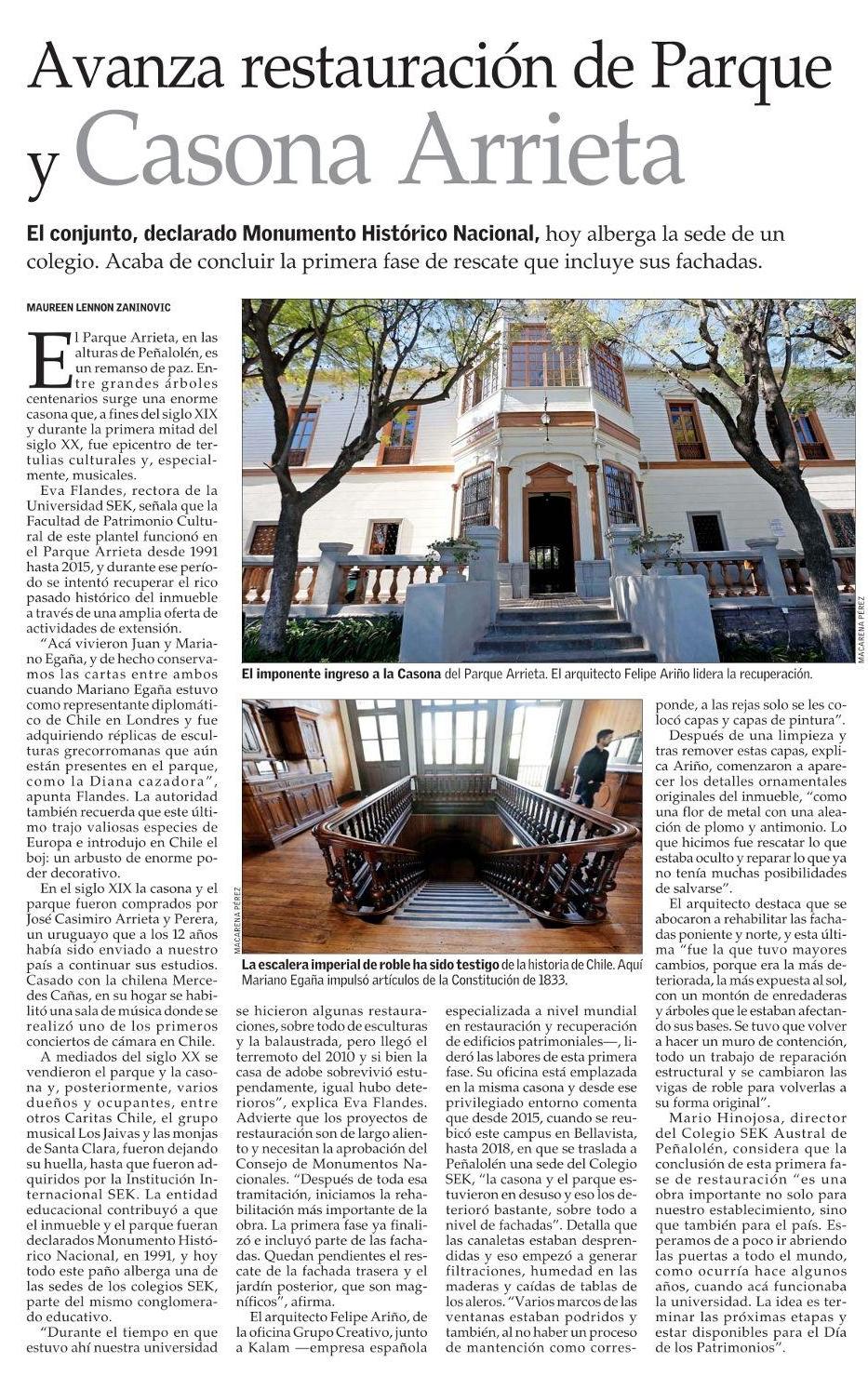 El MercurioAvanza restauración de Parque y Casona Arrieta