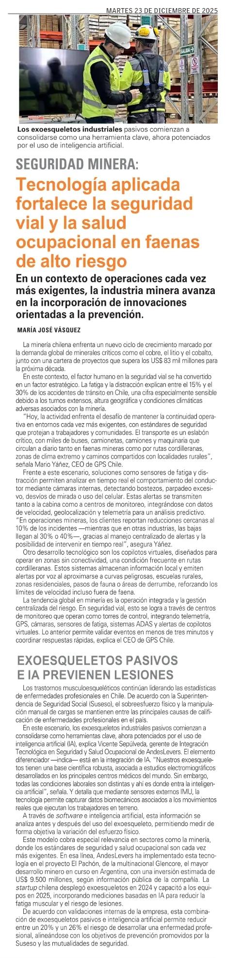 El Mercurio (Edición Especial)Tecnología aplicada fortalece la seguridad vial y la salud ocupacional en faenas de alto riesgo