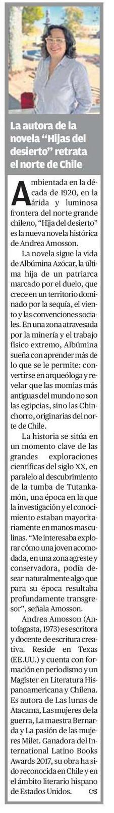 El Mercurio de CalamaLa autora de la novela “Hijas del desierto” retrata el norte de Chile