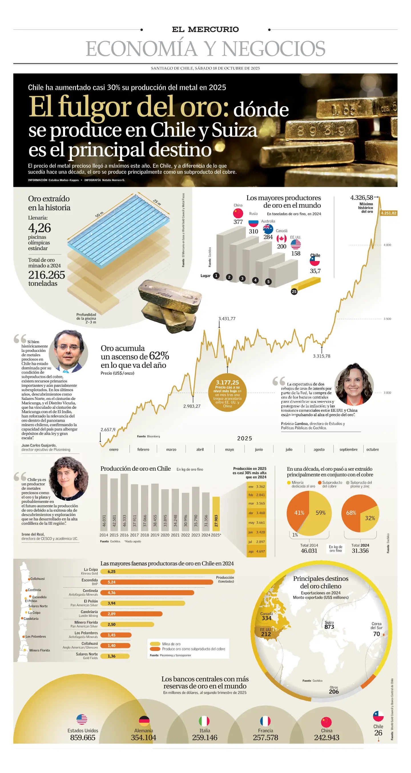El Mercurio Cuerpo BEl fulgor del oro: dónde se produce en Chile y Suiza es el principal destino