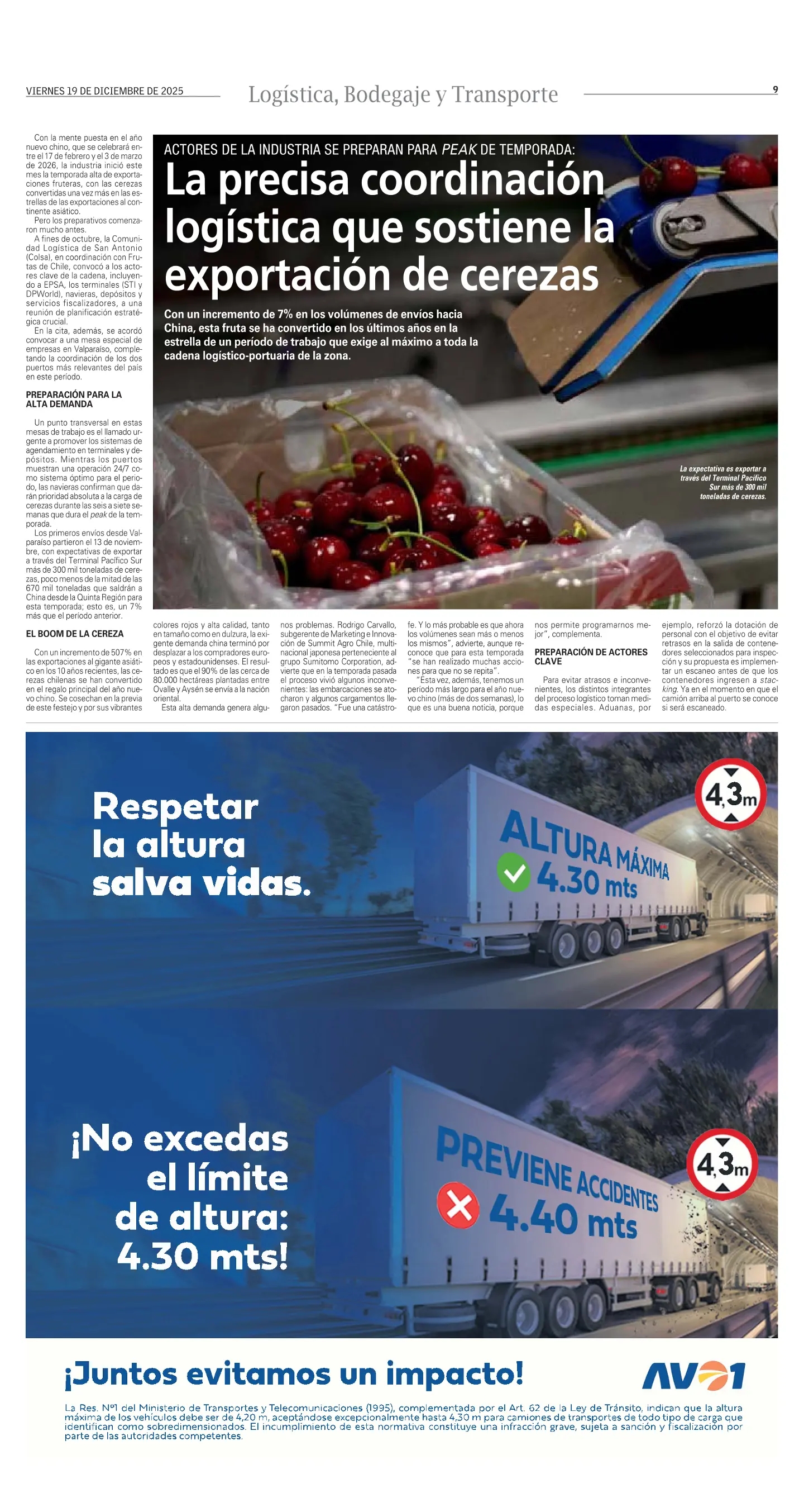 El Mercurio (Edición Especial)La precisa coordinación logística que sostiene la exportación de cerezas