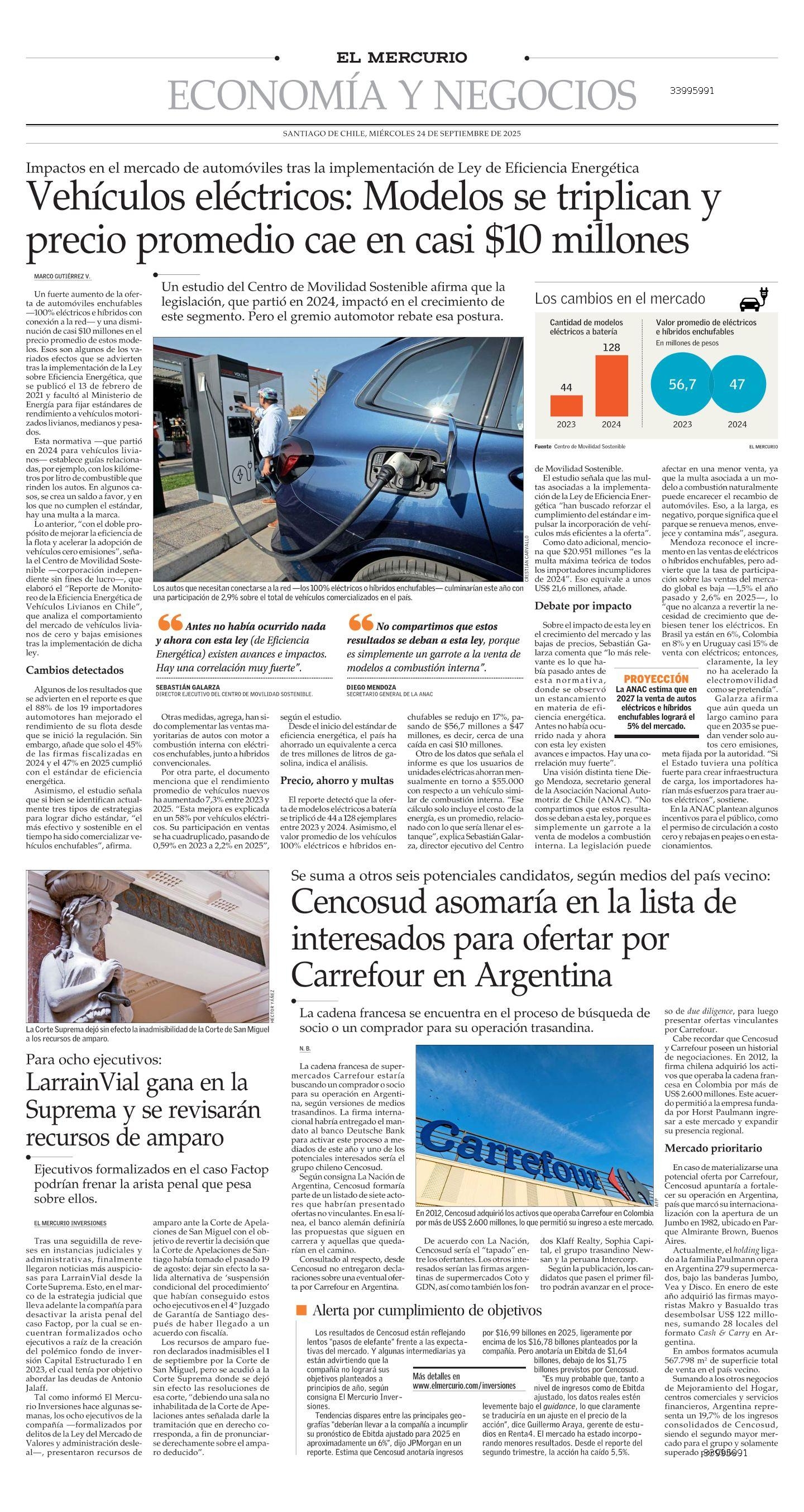 Lo anterior, “con el doble propósito de mejorar la eficiencia de la flota y acelerar la adopción de vehículos cero emisiones”, señala el Centro de Movilidad Sostenible —corporación independiente sin fines de lucro—, que elaboró el “Reporte de Monitoreo de la Eficiencia Energética de Vehículos Livianos en Chile”, que analiza el comportamiento del mercado de vehículos livianos de cero y bajas emisiones tras la implementación de dicha ley.