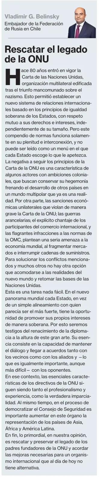 Vladimir G. BelinskyEmbajador de la Federaciónde Rusia en Chile