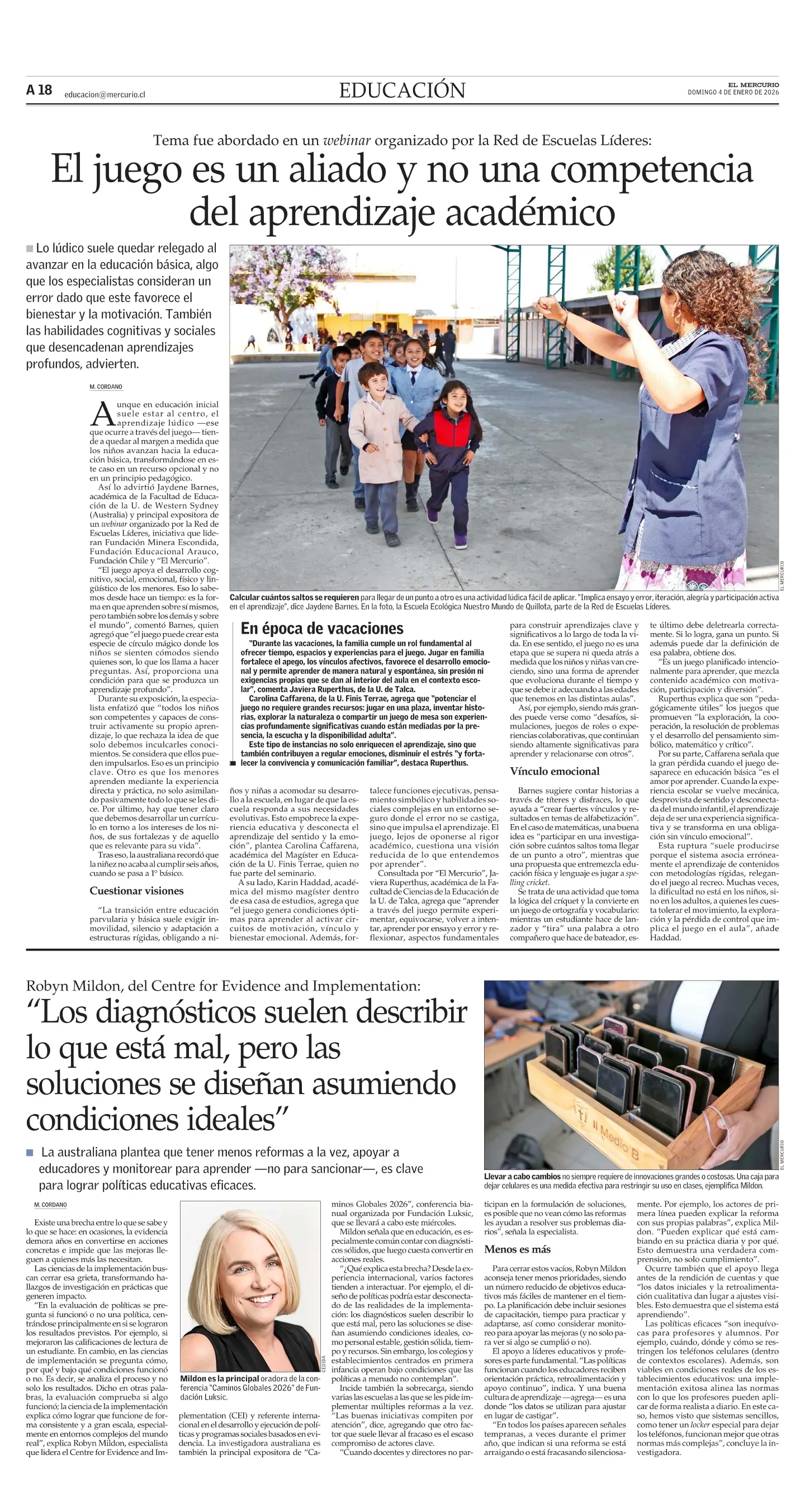 Así lo advirtió Jaydene Barnes, académica de la Facultad de Educación de la U. de Western Sydney (Australia) y principal expositora de un webinar organizado por la Red de Escuelas Líderes, iniciativa que lideran Fundación Minera Escondida, Fundación Educacional Arauco, Fundación Chile y 'El Mercurio'.
