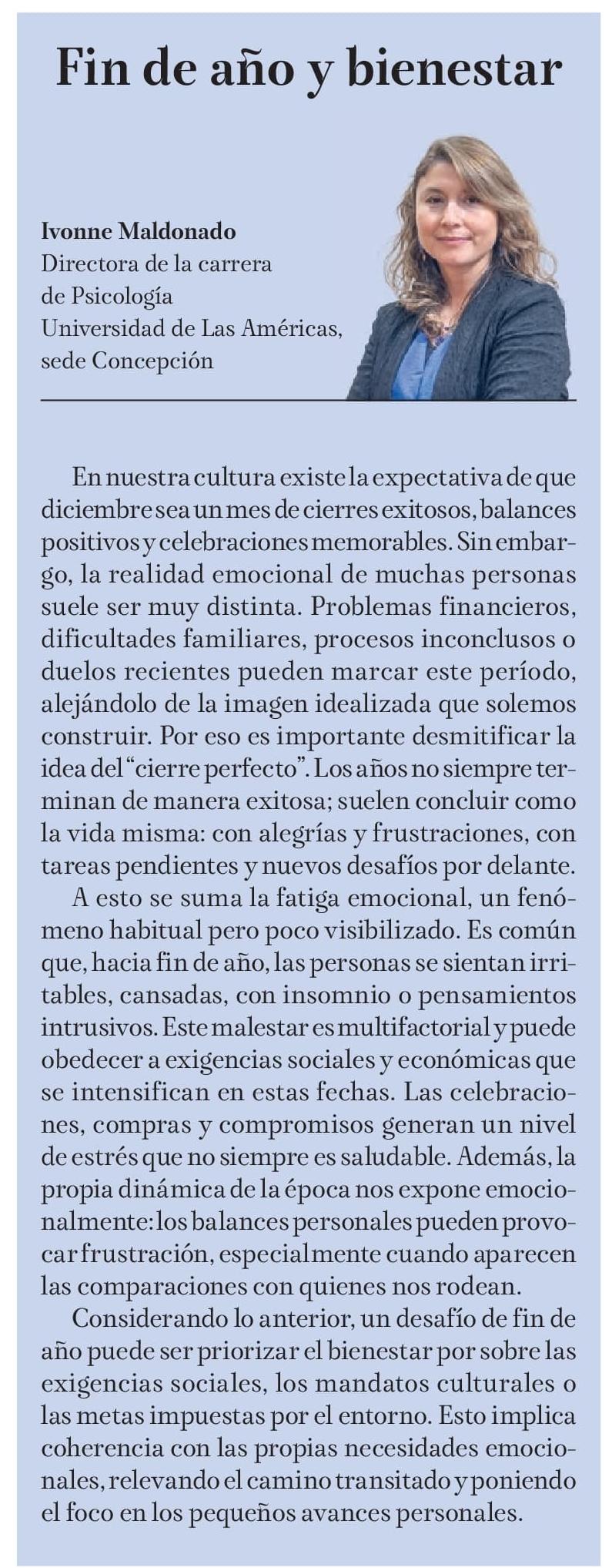 Considerando lo anterior, un desafío de fin de año puede ser priorizar el bienestar por sobre las exigencias sociales, los mandatos culturales o las metas impuestas por el entorno. Esto implica coherencia con las propias necesidades emocionales, relevando el camino transitado y poniendo el foco en los pequeños avances personales.