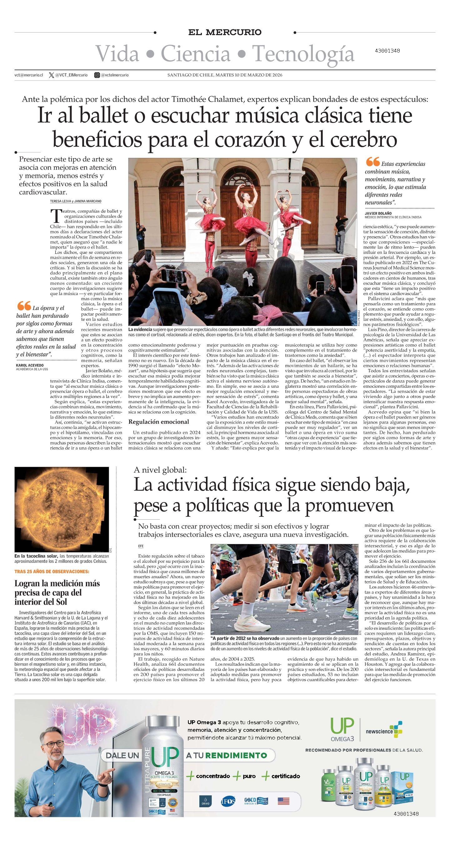 Javier Bolaño, médico internista e intensivista de Clínica Indisa, comenta que “al escuchar música clásica o presenciar ópera o ballet, el cerebro activa múltiples regiones a la vez”.