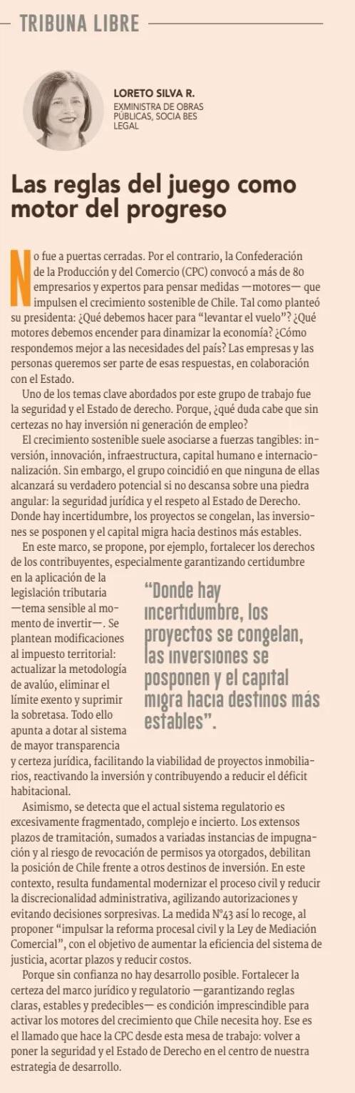DFLas reglas del juego como motor del progreso. Por Loreto Silva