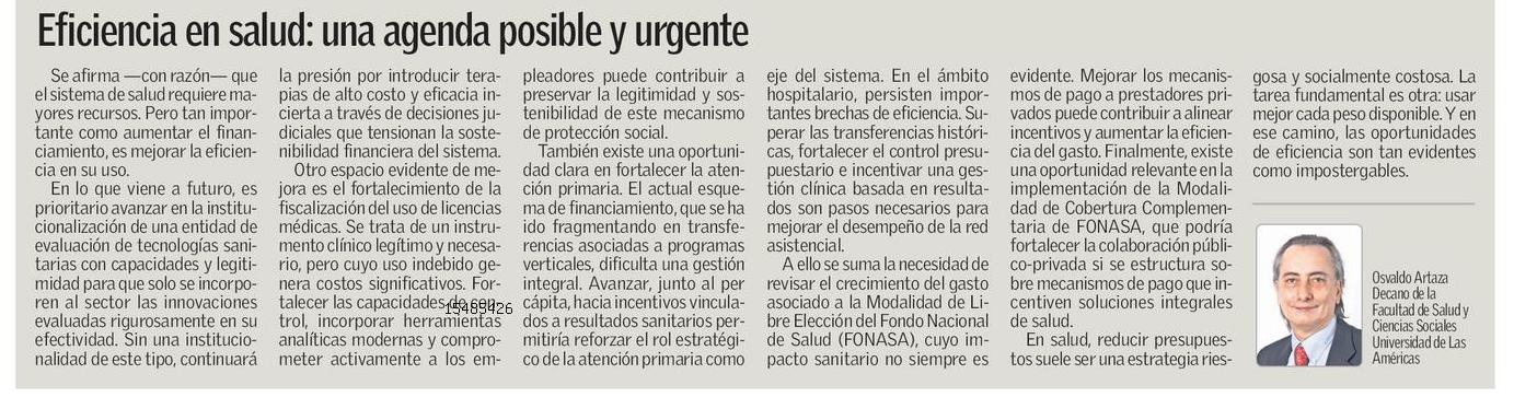 También existe una oportunidad clara en fortalecer la atención primaria. El actual esquema de financiamiento, que se ha ido fragmentando en transferencias asociadas a programas verticales, dificulta una gestión integral. Avanzar, junto al per cápita, hacia incentivos vinculados a resultados sanitarios permitiría reforzar el rol estratégico de la atención primaria como eje del sistema. En el ámbito hospitalario, persisten importantes brechas de eficiencia. Superar las transferencias históricas, fortalecer el control presupuestario e incentivar una gestión clínica basada en resultados son pasos necesarios para mejorar el desempeño de la red asistencial.