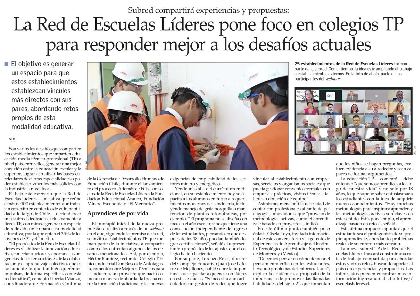 El MercurioLa Red de Escuelas Líderes pone foco en colegios TP para responder mejor a los desafíos actuales